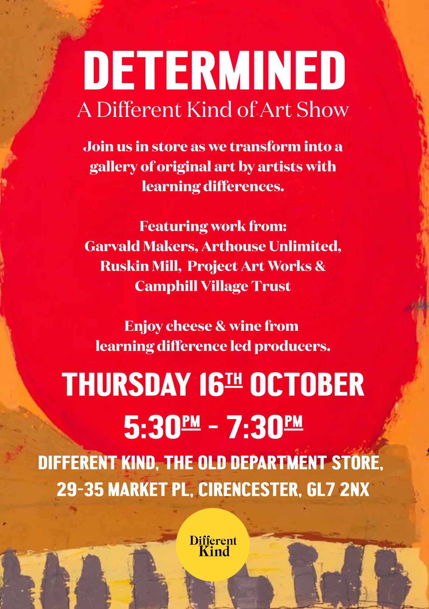 For one night only, Different Kind—a concept interior store in the heart of Cirencester—will transform into a contemporary gallery space, presenting original works by neurodivergent artists and makers. Among the featured creatives are artists from Project Art Works, whose work reflects deeply individual practices shaped by unique experiences of the world.