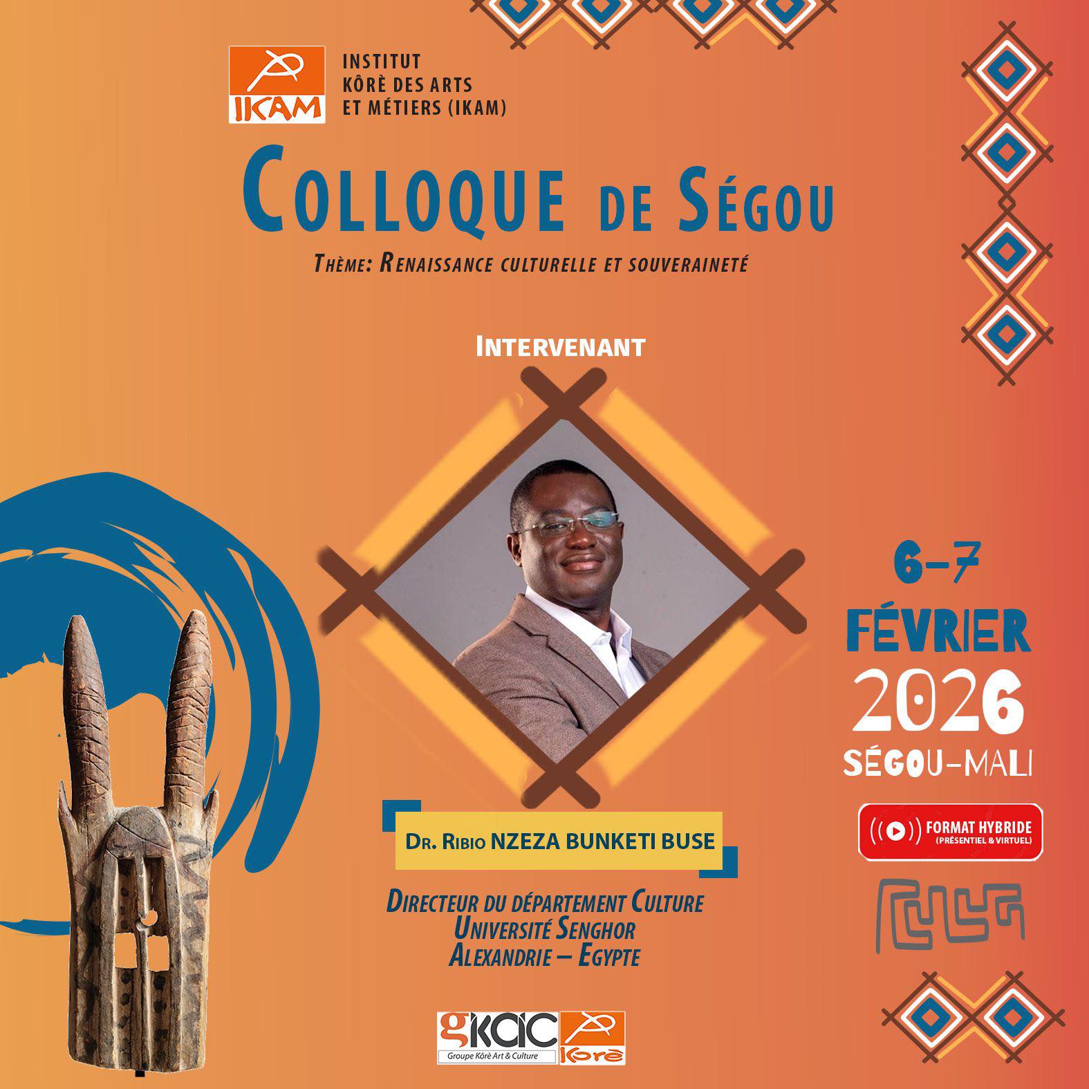 Dans le cadre du Colloque de Ségou, placé sous le thème « Renaissance culturelle et souveraineté », l'Institut Kôrè des Arts et Métiers (IKAM) a le plaisir d'annoncer la participation de Ribio Nzeza Bunketi Buse en tant qu'intervenant.