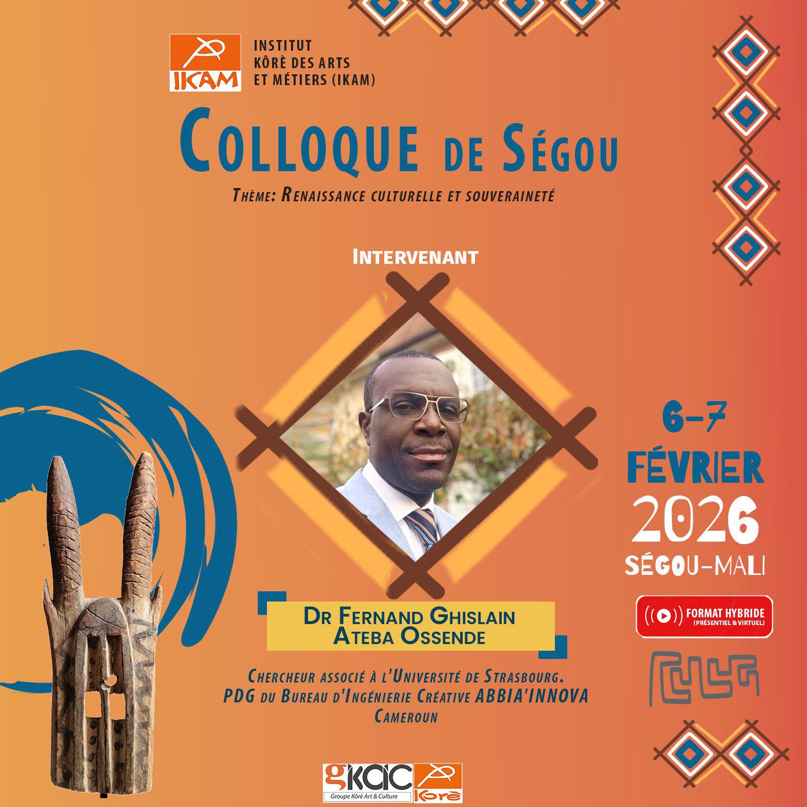 Dans le cadre du Colloque de Ségou, placé sous le thème « Renaissance culturelle et souveraineté », l'Institut Kôrè des Arts et Métiers (IKAM) annonce la participation de Fernand Ghislain Ateba Ossende en tant qu'intervenant.
