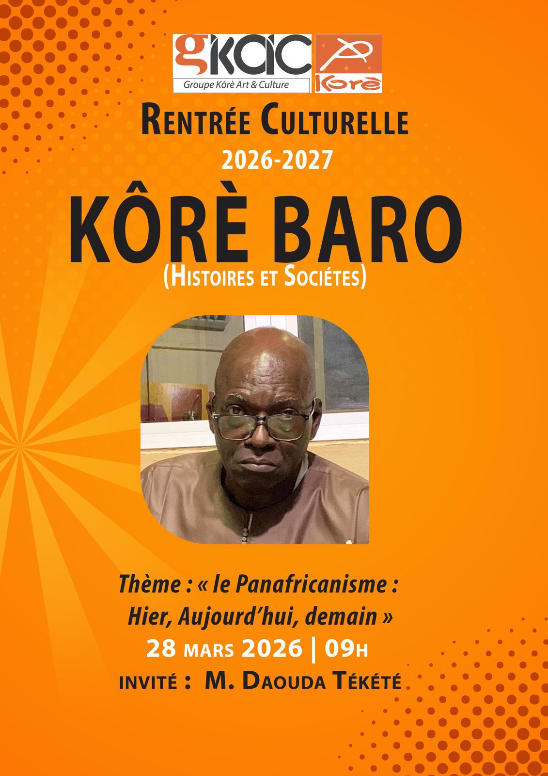 Dans le cadre de la Rentrée Culturelle 2026–2027, le KORE BARO vous donne rendez-vous pour un moment d'échange intellectuel et citoyen autour d'une thématique majeure : « Le Panafricanisme : hier, aujourd'hui, demain ».