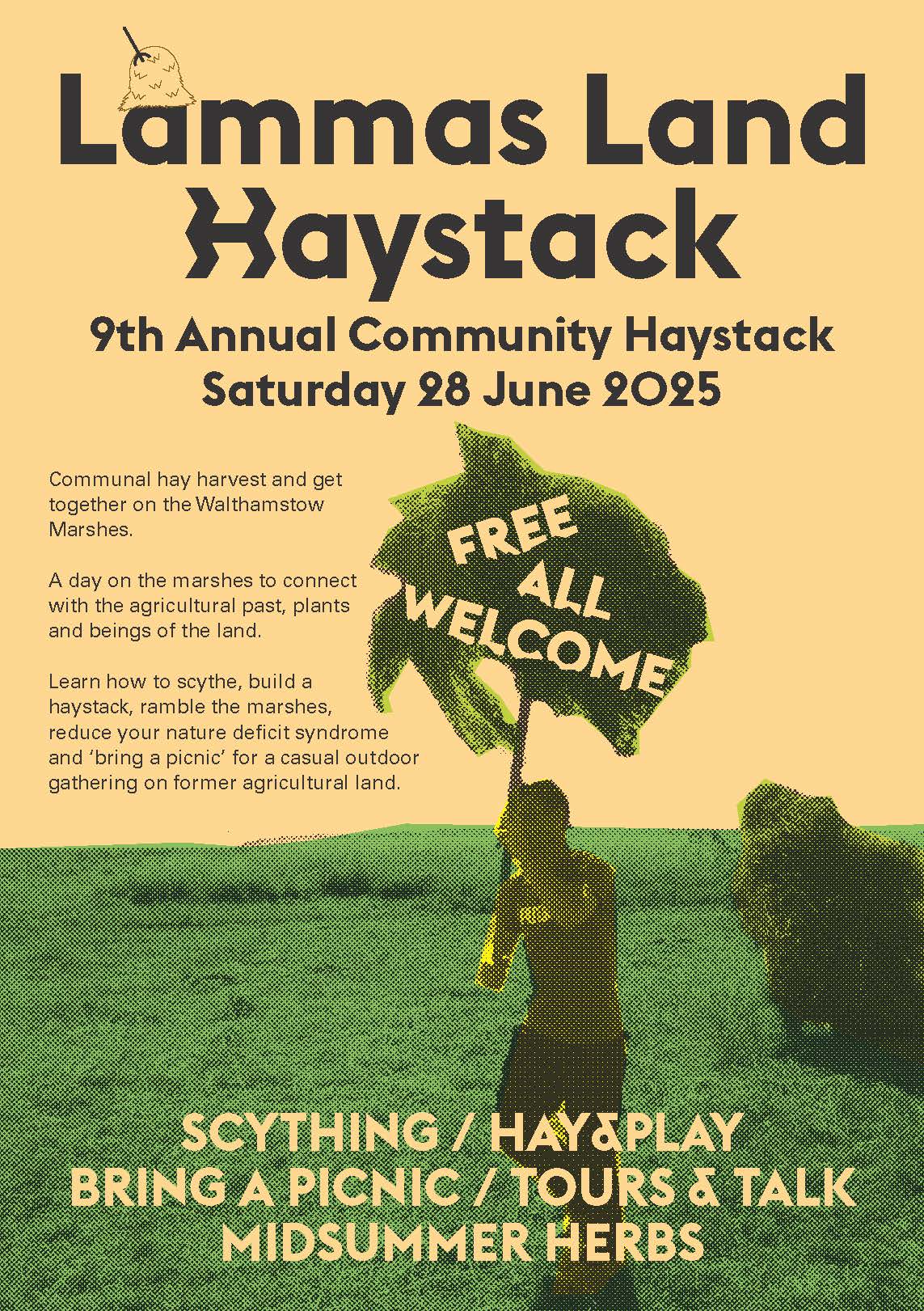 In 2025 we are meeting again on Saturday 28th June on the Walthamstow Marshes in east London to be close to the land, honour Lammas and common land, learn how to scythe, find and meet medicinal plants, make hay and a haystack, and generally celebrate late June on this public land, which holds many layers and histories beyond the current public park use.