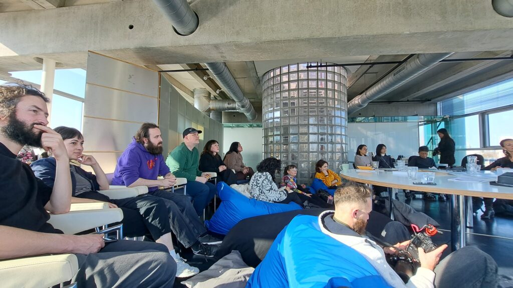 Welcoming this, Gertrude Flentge, who is one of the artistic directors of documenta 15, shared about the lumbung practice program which is one of the disciplines for the master’s program at the Sandberg Institute (https://www.sandberg.nl/temporary-program-lumbung-practice), Amsterdam collaborates with De Appel, Amsterdam and Gudskul, Jakarta. Various Lumbung working groups also shared their experiences with each other after documenta 15, including Lumbung Press which focuses on publications. Fred updated lumbung press from Greenland. The possibilities to connect lumbung press through the collective there and Lumbung Radio which holds many radio programs with radio networks in various countries.